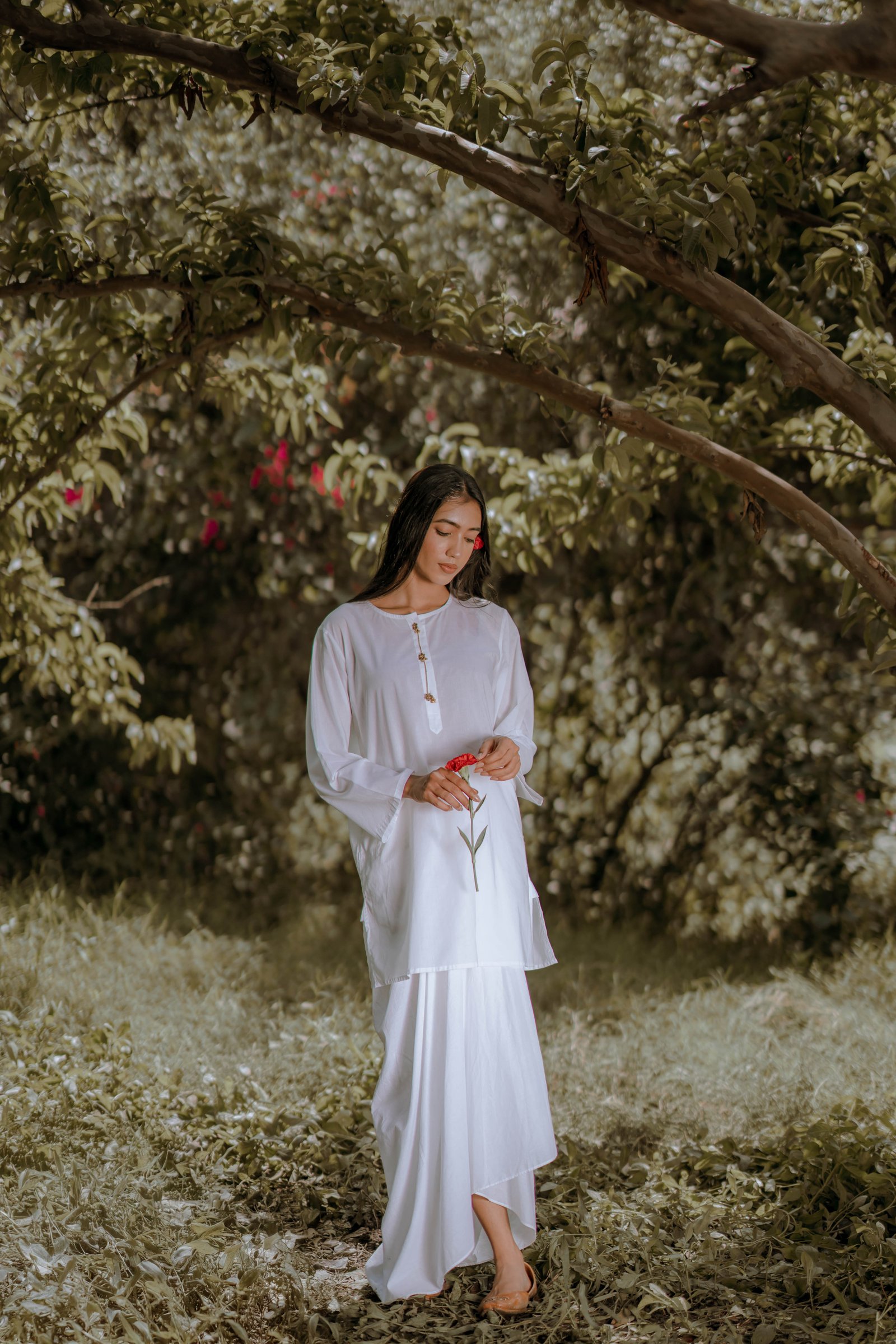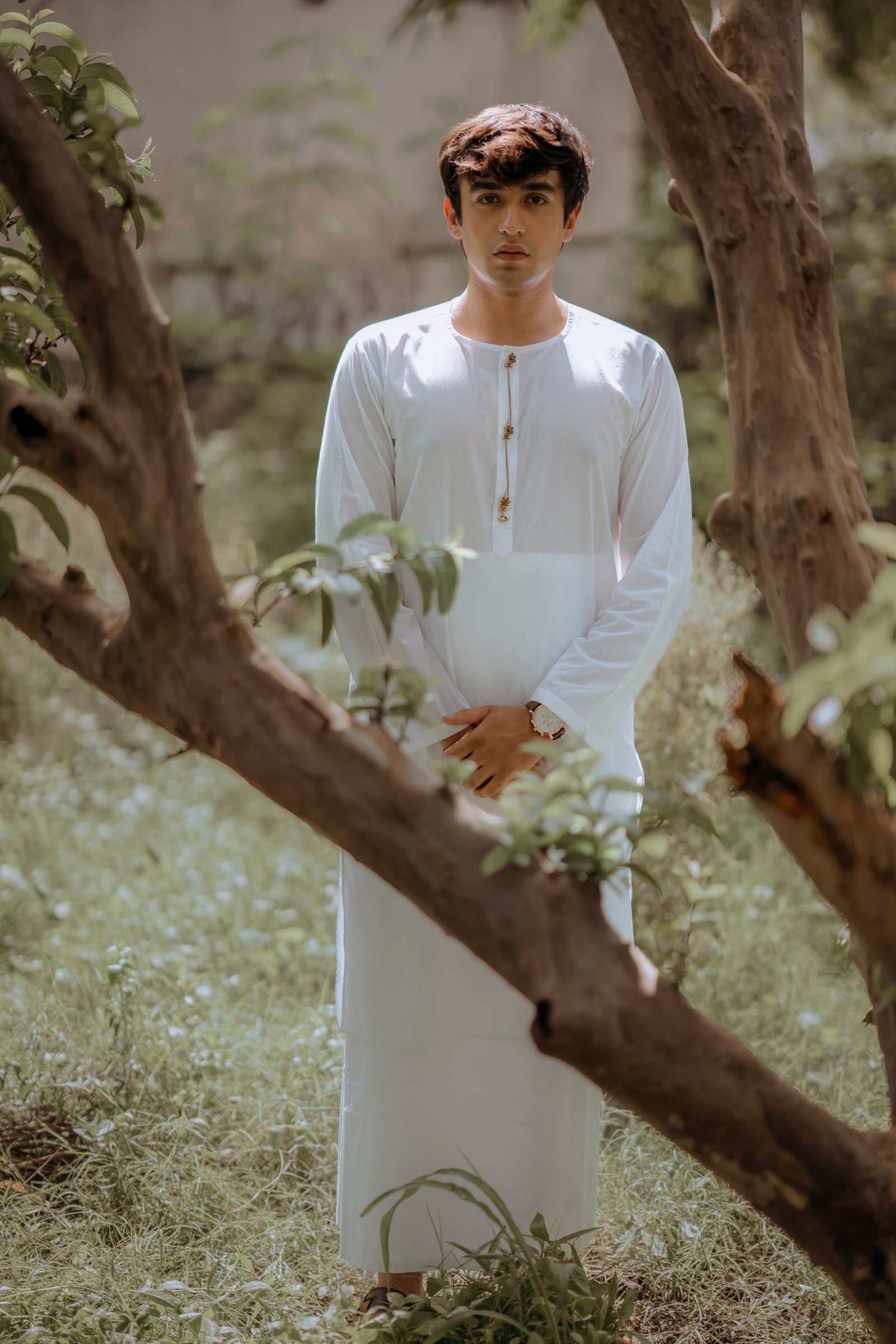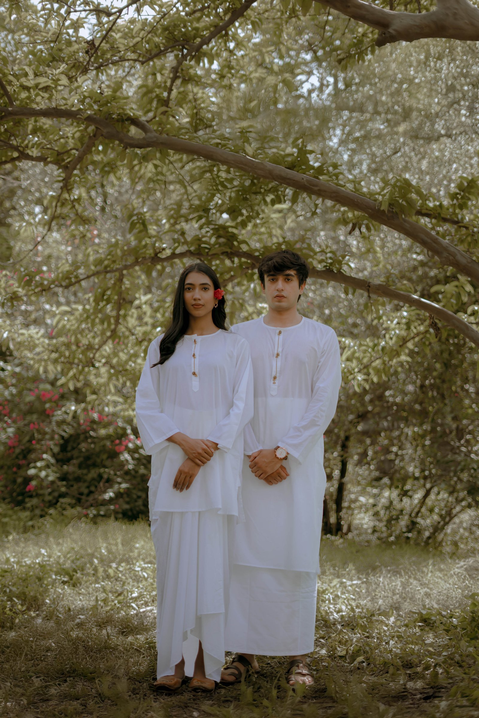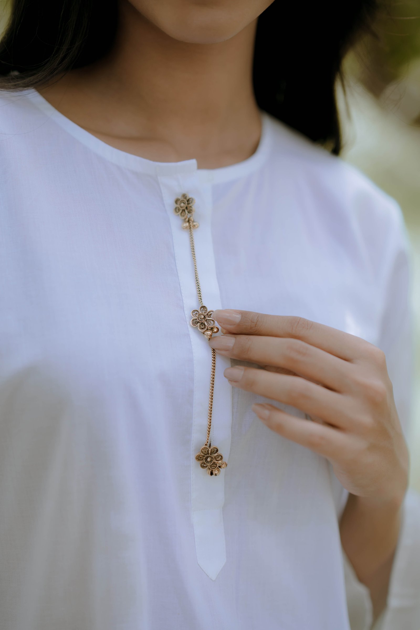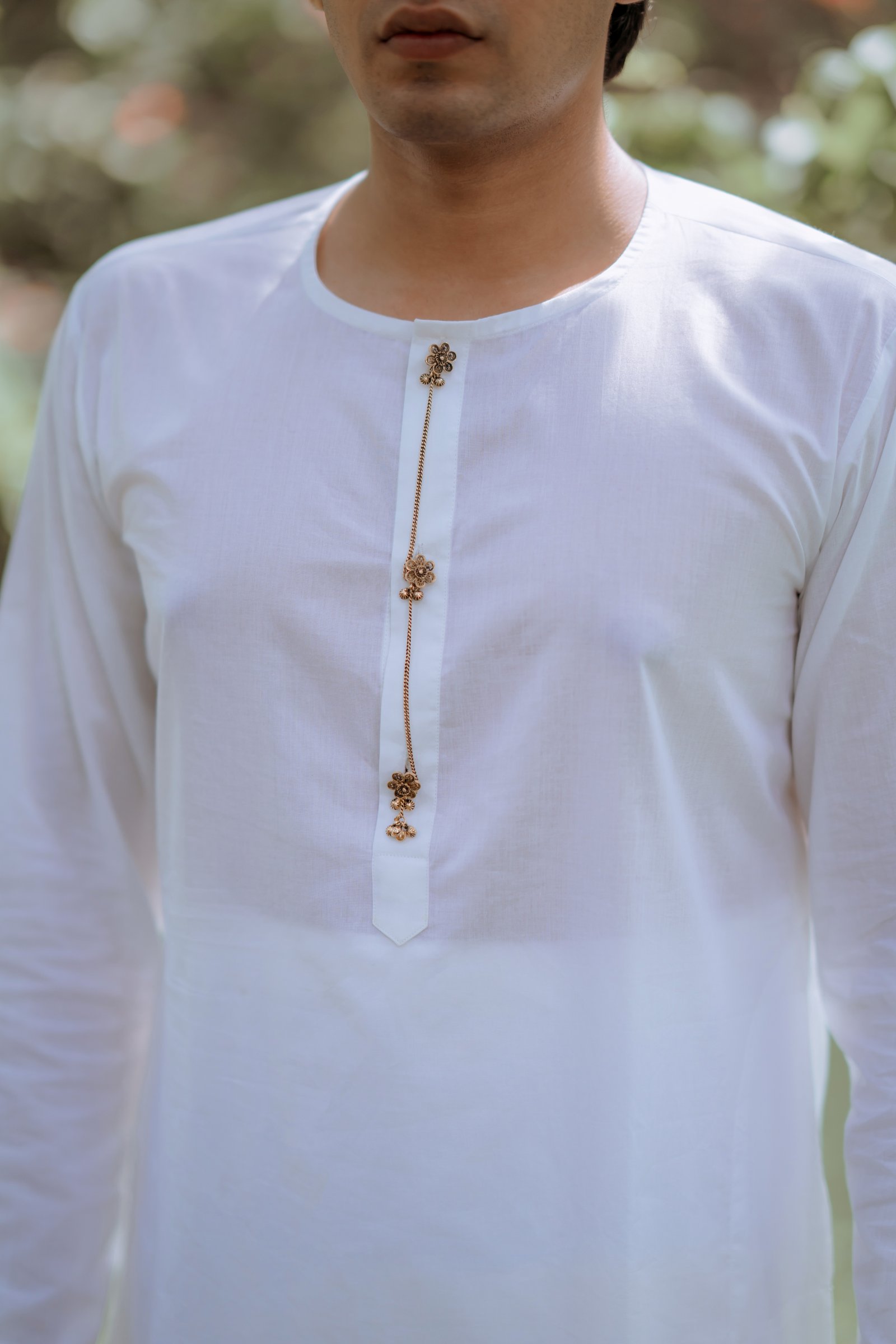 Chand Chandani A kurta set made for two hearts that beat as one. Crafted in premium cotton that breathes love and ease, it features real silver buttons gently coated with oxidised gold and a soft chain detail along the placket. The silhouettes draw inspiration from our rich past — with a dhoti-style skirt and lungi-style bottoms that echo timeless traditions. This set speaks of soulful mornings, quiet conversations, and a love that grows softer, stronger, and more beautiful with time.