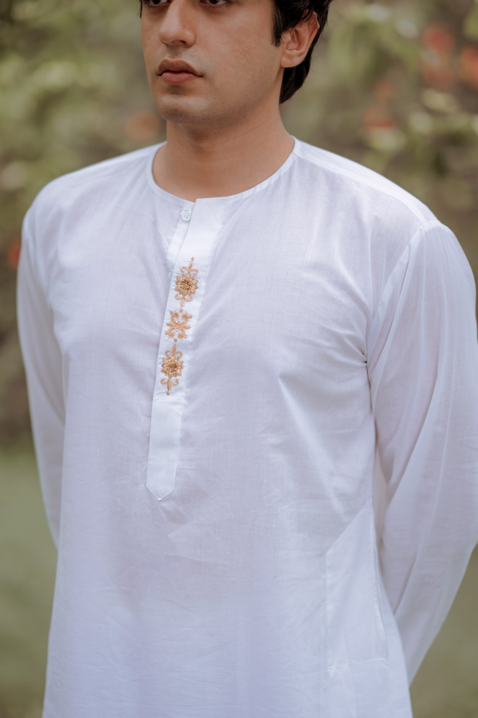 Made from Love , this kurta is soft, breathable, and designed to keep you at ease on warm days. The front placket features delicate hand embroidery adding just the right touch of craftsmanship. With its crisp finish and quiet elegance, it’s made for those who prefer subtle style with lasting impact.